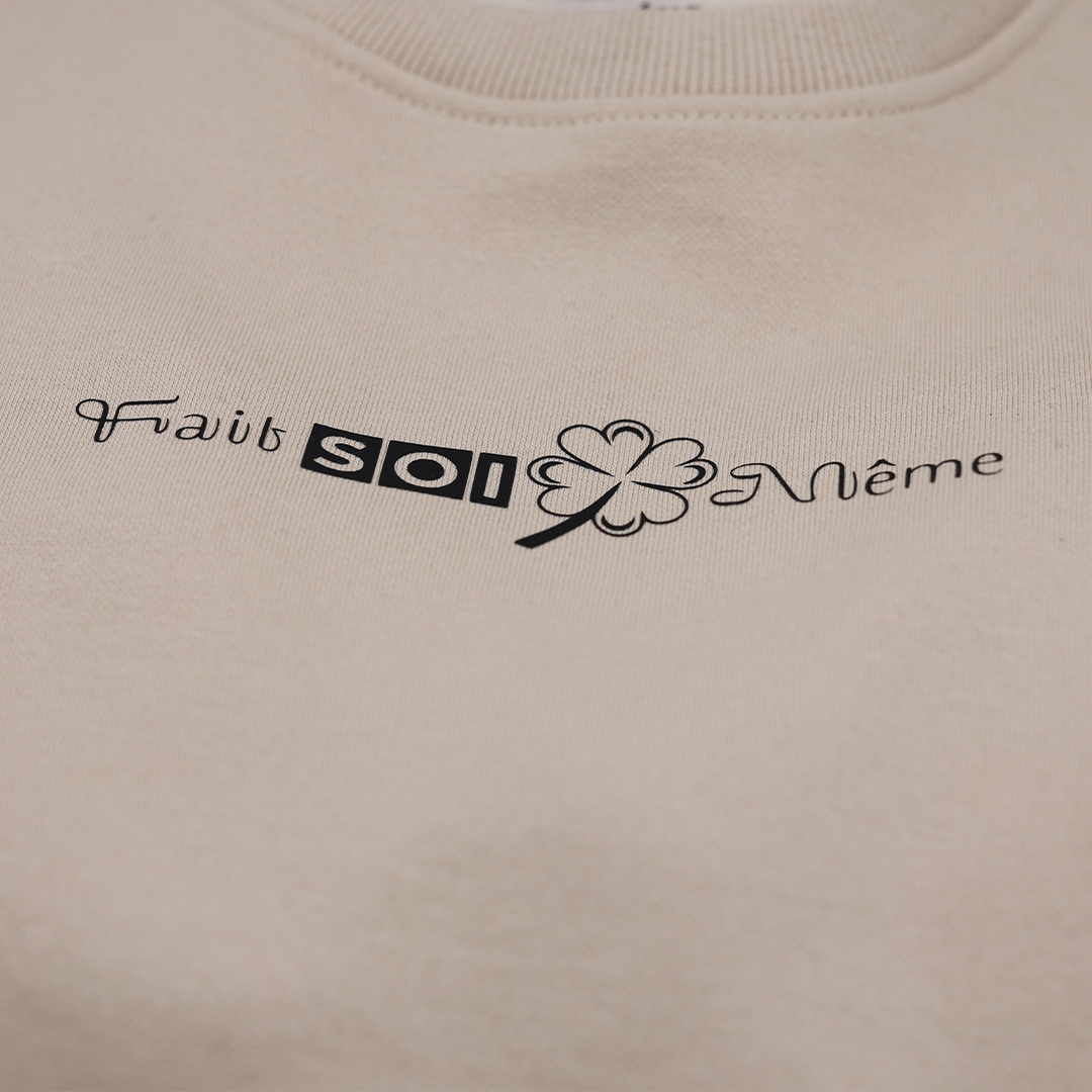 Beige-zand FSM Sweater met Zwarte Opdruk – Unisex